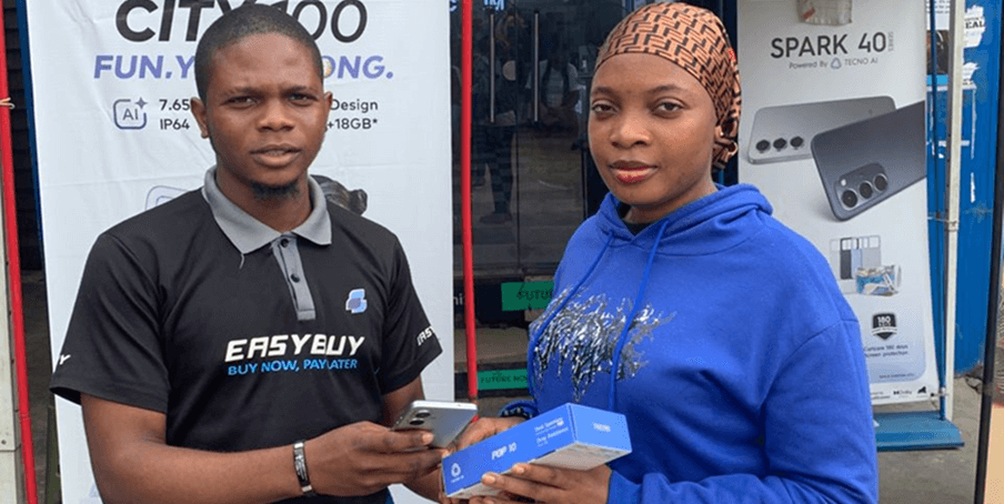Determined to improve his standard of living, Folajimi saw an Easybuy sales team providing smart devices to the underserved in his community. The sales team’s words, their confidence, and their ability to connect with people sparked something in Folajimi. He saw a path forward and a way to use his educational skills for conversation.